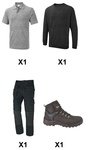 This bundle consists of 1 x polo, 1 x sweatshirt, 1 x trousers, 1 x boots